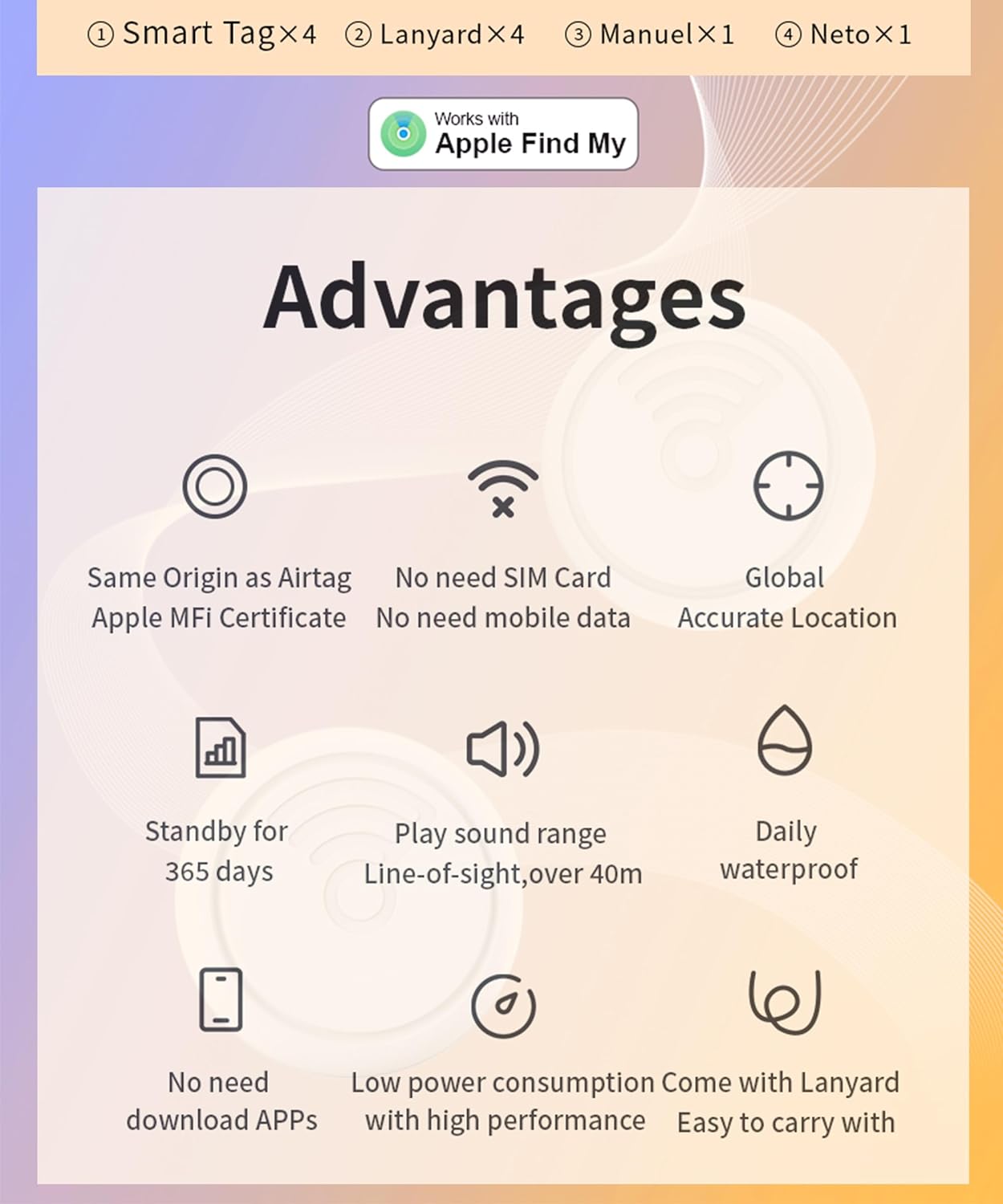 | Warranty Description | Tags with CR2032 coin cell battery installed |