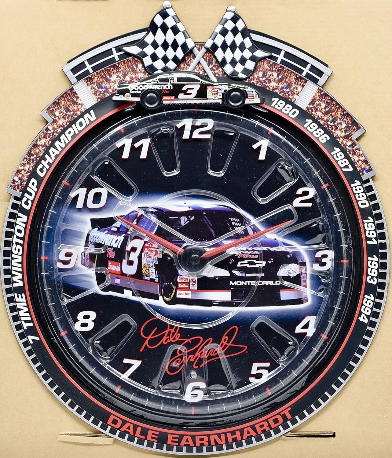 car races around every hour! wall clock with real sounds 7 time winston cup champion