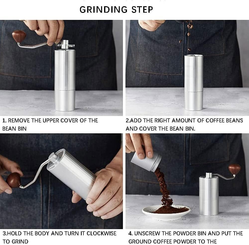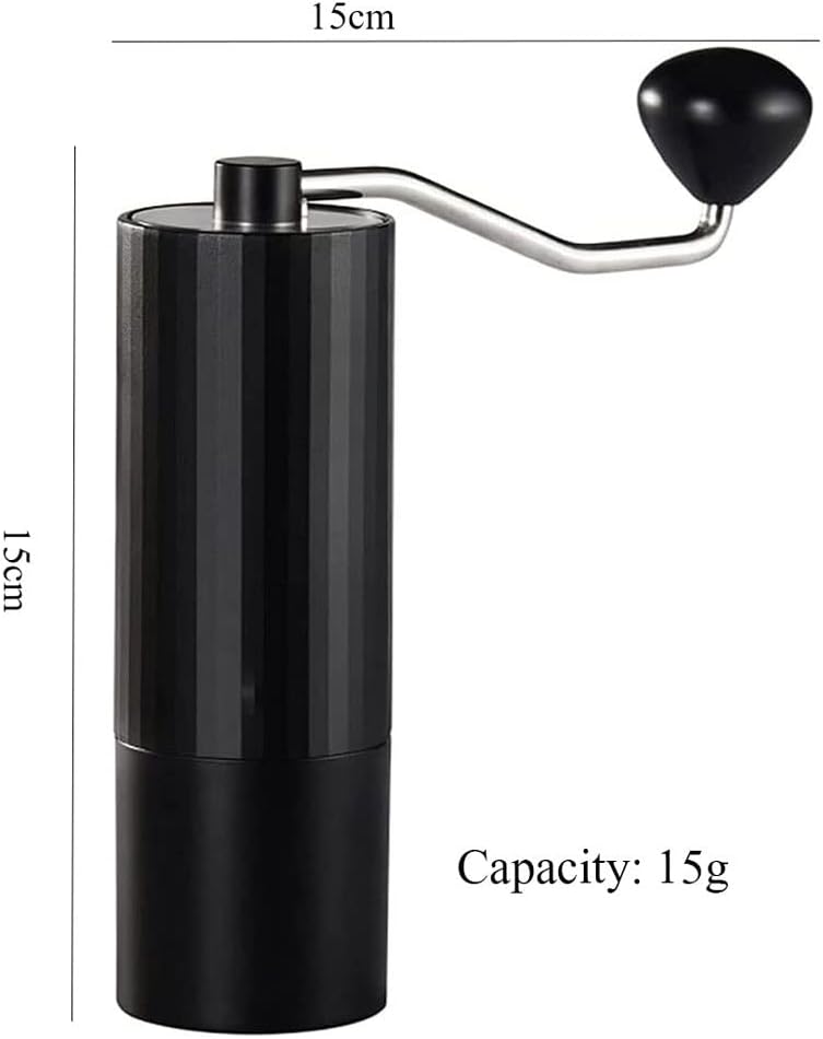Product name: coffee grinderUsage: ManualProduct capacity: 15gProduct material: stainless steel grinding core, ABS shellProduct features: labor-saving and good grinding design, sharp pure steel grinding core, convenient thickness adjustment, uniform grinding particles, compact and convenient to carry, high-quality material processing.Grinding coarseness adjustment (factory default setting is medium grinding)1. If you need to adjust the thickness, you need to fix the central axis with a handle, and then adjust the dial.2. Rotate the dial clockwise, the grinding core rotates inward and becomes thinner.3. Rotate the dial counterclockwise, and the grinding core rotates outward to make it thicker.Cleaning and maintenance:1. When using for the first time, grind a little beans and discard them to clean the core2. The fuselage inside cannot be washed directly, the core needs to be disassembled towash or cleaned with a brush3. The bean pod only for roasted coffee beans, not for other materials4. The fuselage outside is washable, dry it with soft cloth after cleaningAfter-Sales Service: If you have any questions, please feel free to contact us, we will answer you within 24 hours.