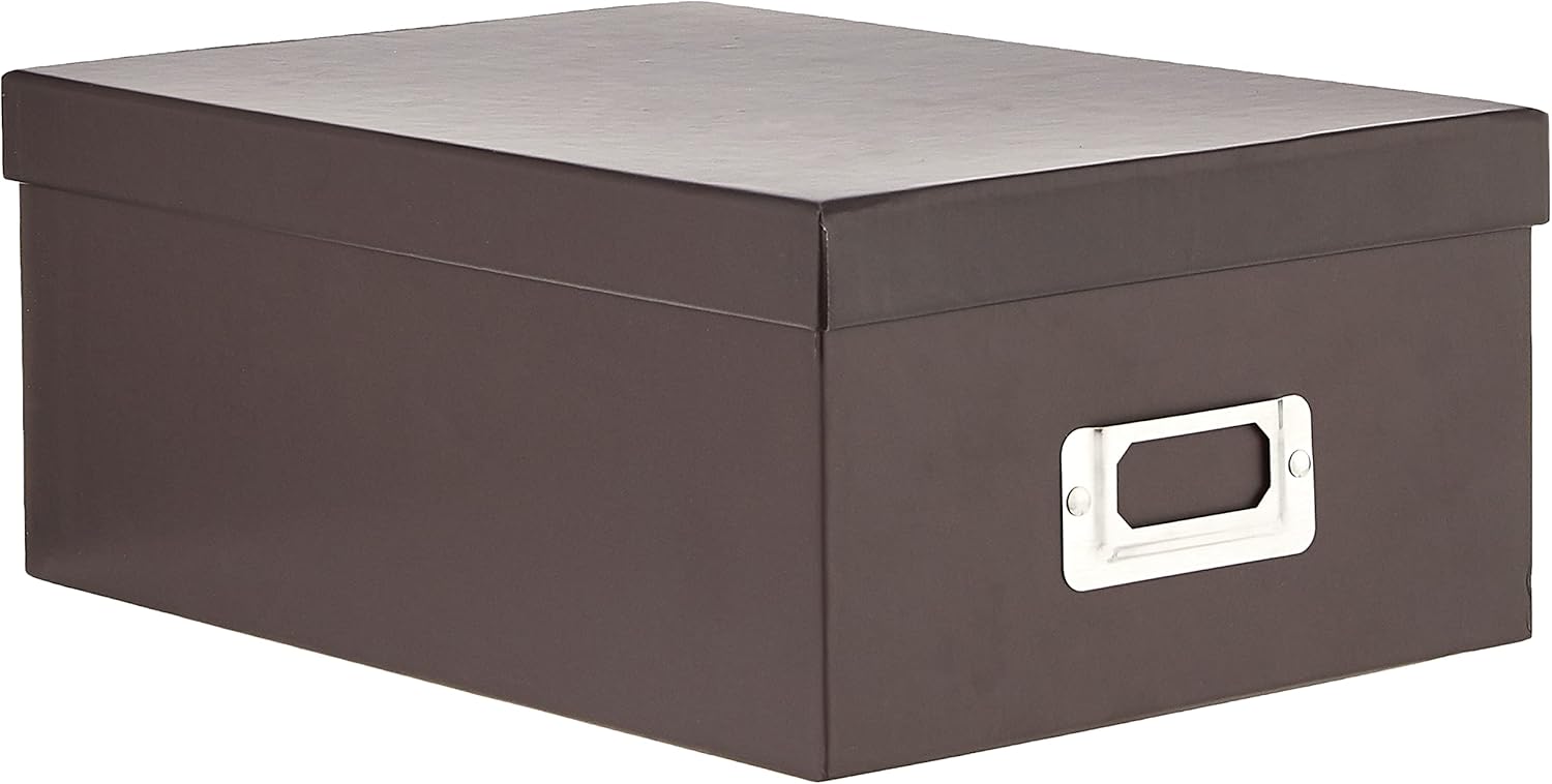 Store your photos and more with this heavy-duty Pioneer Photo Albums storage box. This durable box holds over 1,100 prints up to 4"x7" and is ideal for storing negatives, postcards, greeting cards, recipes, wedding keepsakes, baby memories, trading cards and collectibles just to name a few. The box features a metal identification plate and includes a set of index cards. Photo safe: acid free. The outside dimensions of the box are 11.25"L x 7.75"W x 4.5"H.